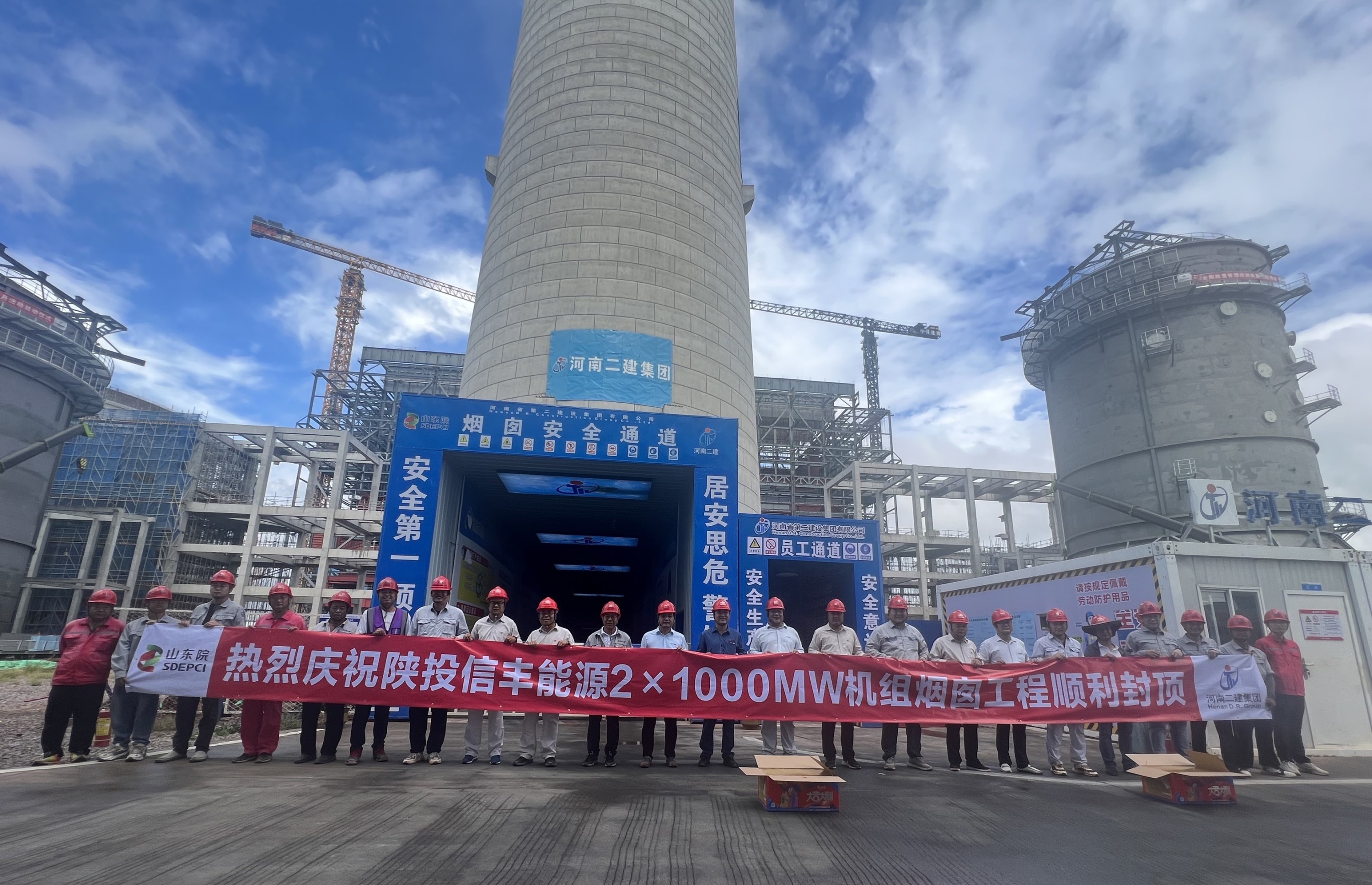 烟塔施工分公司陕投信丰能源电厂项目烟囱外筒顺利封顶